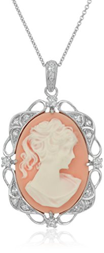 Sterling Silver Pink Cameo Oval with Created White Sapphire Pendant Necklace, 18"