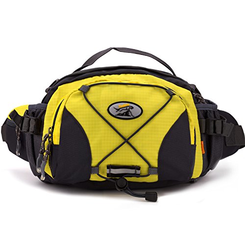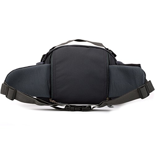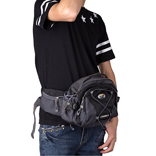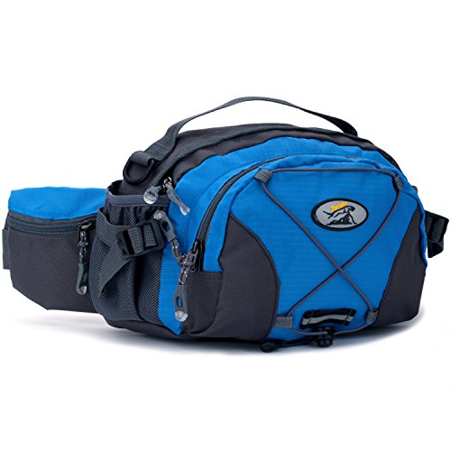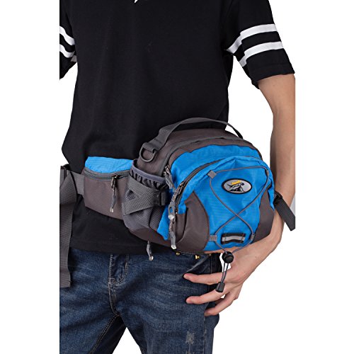 -. Feature : The material is 600D strong nylon, it is water resistant, wear-resisting and tough. So it can bear the weight of 5KG, the bag will not break / The waist pack has Multiple Pockets. One main pocket, one front pocket, two kettle bags, two belt bags. It likes a magic moving storage space. You can take so mang goods in everywhere. / There is a striking reflective strip on the mid of the bottom. It opens the night safe mode. Let others to see you far away / Honeycomb design belt, it is soft and the air permeability is good. If you Hang in the waist for a long time, you will not feel pain. There is a a specially designed pocket on the back. It can hide the belt and let the bag more beautiful / The funny bag has a top handle. If you wants to rest, you can hang the bag. It also has a detachable shoulder strap, you also can use it as shoulder bag