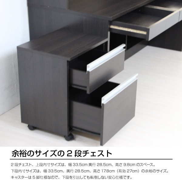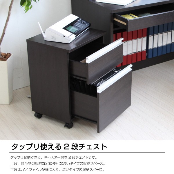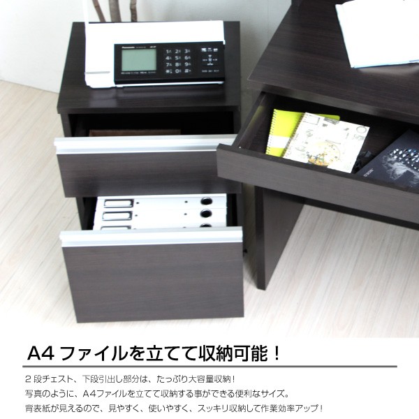 ■2段チェストはフルオープン出来る仕様で、スムースな開閉のスライドレール仕様でA4ファイルが入ります。