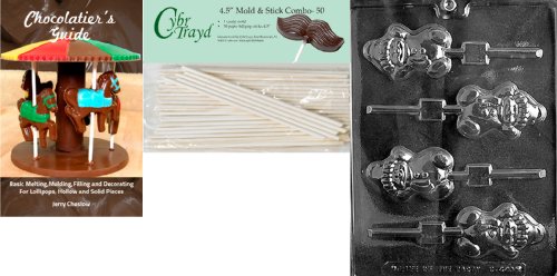 Cybrtrayd 45St50Bk-C440 'Snowman Lolly' Christmas Chocolate Candy Mold with 50 4.5-Inch Lollipop Sticks and Chocolatier's Guide