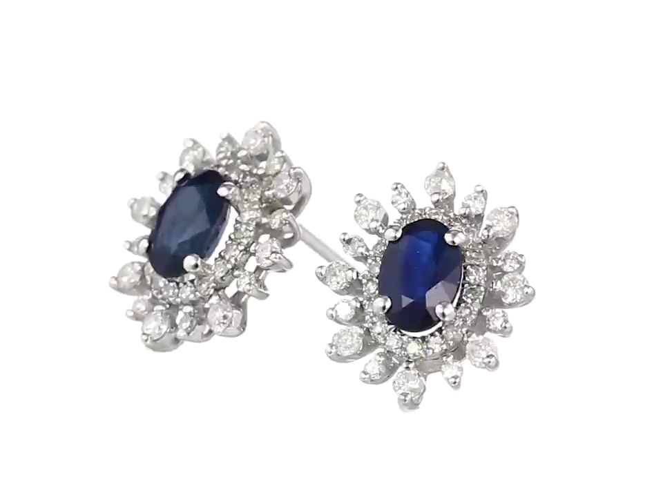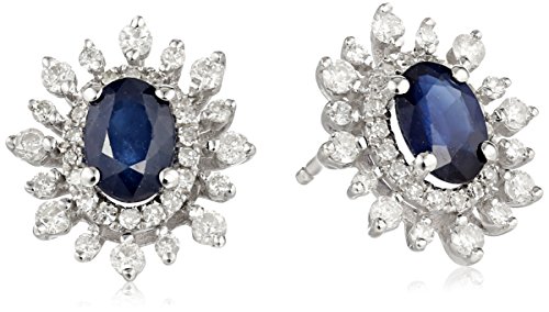 14k White Gold Oval Sapphire with Diamond Sunburst Stud Earrings (3/8cttw, I-J Color, I2-I3 Clarity)