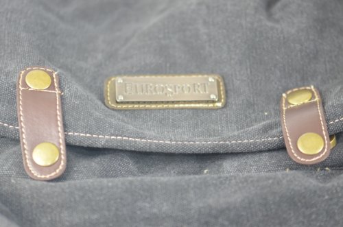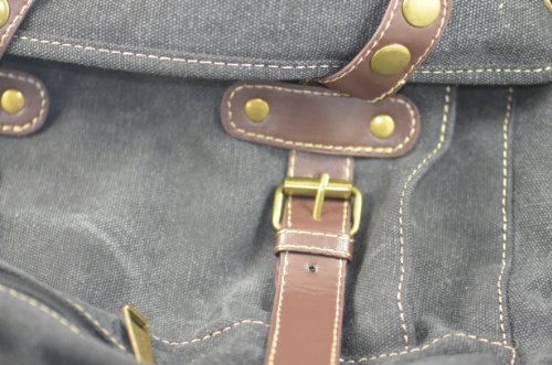 -. Feature : Sports faux leather straps with brass snap closures / two side pockets and bottom strap. / Adjustable foam filled shoulder straps / canvas / approximate 12"*16"*4"
