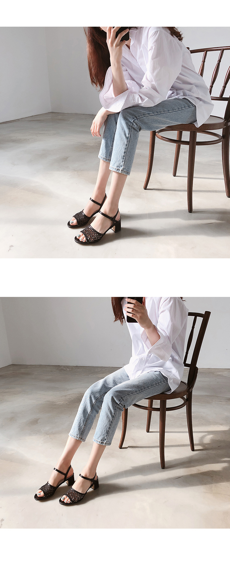 5cm의 미들굽으로 제작하여 안정감있게 착화되고 발목아래를 부드럽게 감싸주는 스트랩으로 한번 더 고정해줍니다.