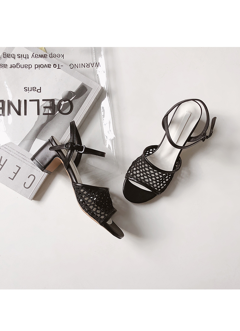 Middle heel mesh point sandals