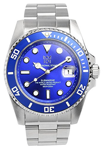 -. Title : [HYAKUICHI 101] ヒャクイチ ダイバーズ 20気圧防水 腕時計 ウォッチ ビジネス カジュアル デイト 逆回転防止ベゼル ブルー メンズ