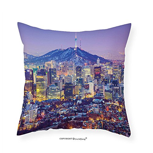 (VROSELV)/Kids' Furniture Room Decor/Room Decor/DIRECT FROM USA/VROSELV Custom Cotton Linen Pillowcase Modern Skyline of Seou South Korea Cityscape with Buildi...