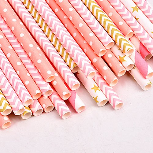 - DESIGNS of VARIOUS PATTERNS - The disposable straws include pink dot, pink stripe, pink wave, gold wave, gold star patterns, 200 pcs paper straws in total, very beautiful, which can meet your different needs.