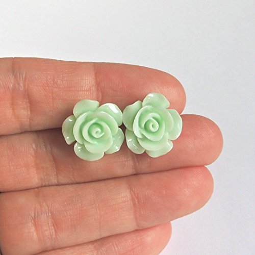 -. Title : 15mm Mint Green Rose Plastic Post Earrings for Metal Sensitive Ears