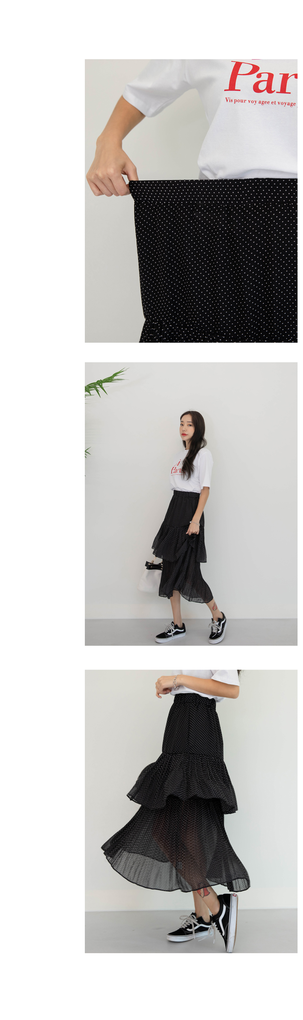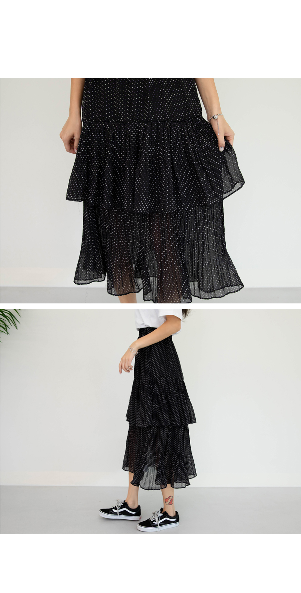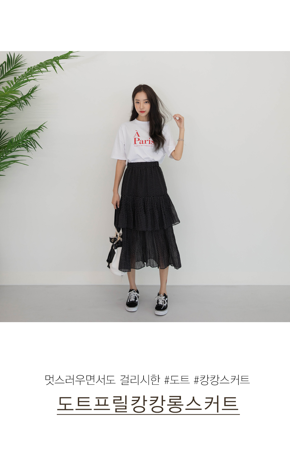 잔 도트 패턴에 밑단 캉캉 프릴 디테일이