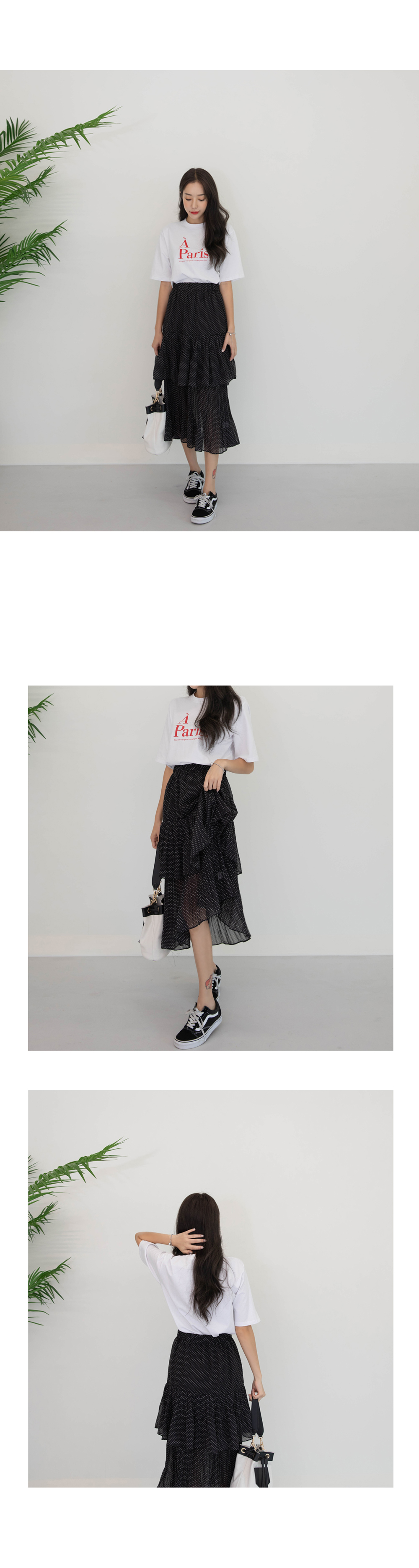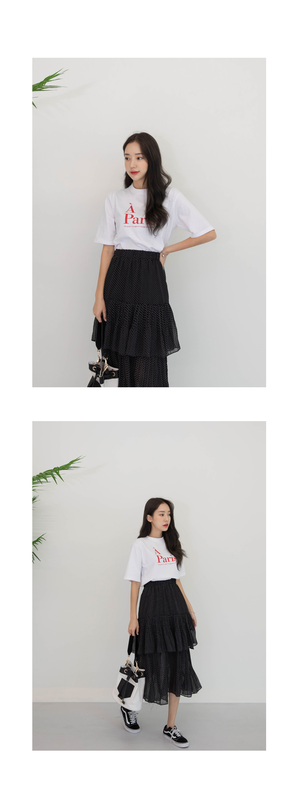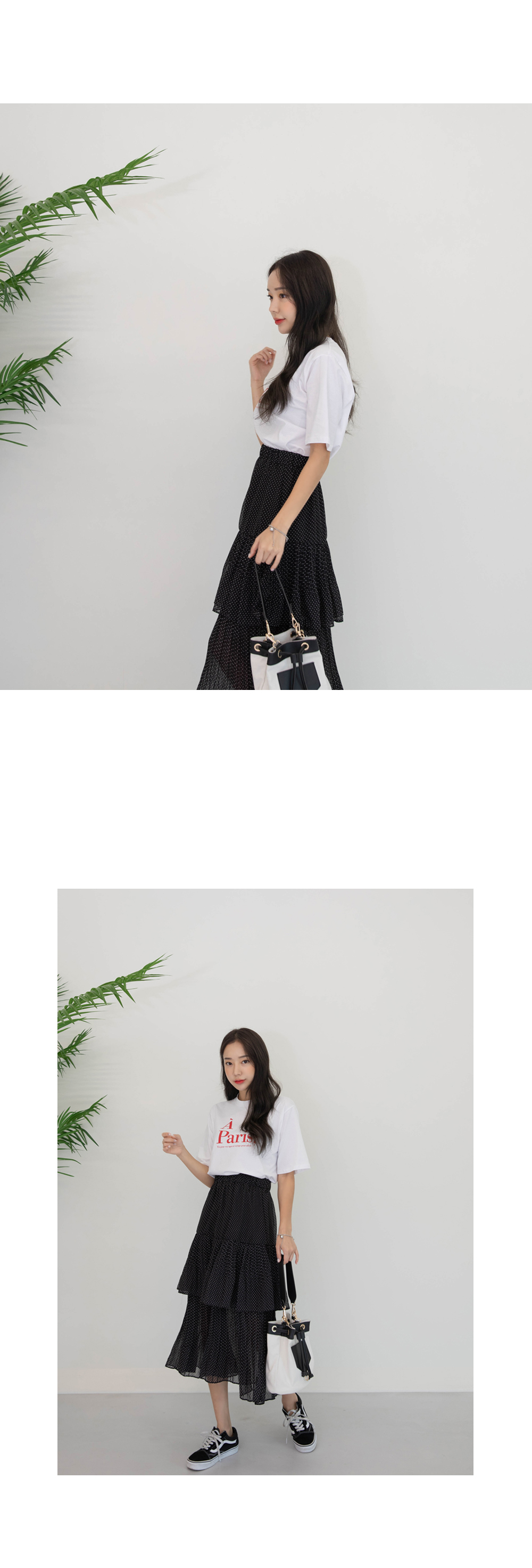 잔 도트 패턴에 밑단 캉캉 프릴 디테일이