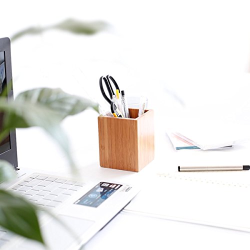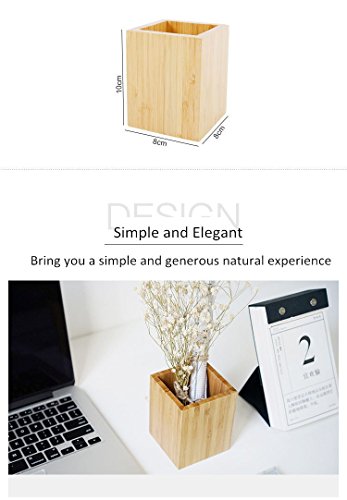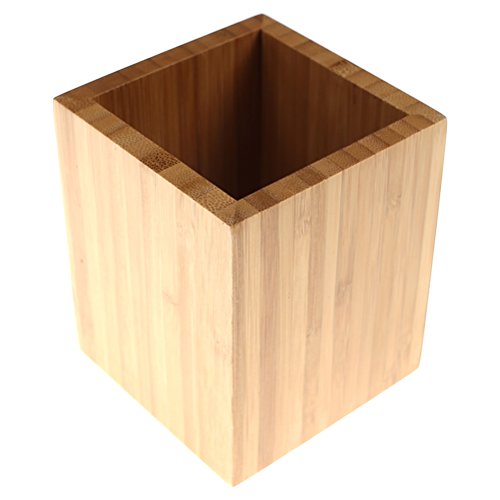 Yiphates Bamboo Wood Desk Pen Pencil Holder Cup Stand Creative Small Article Storage Box Tableware organizer Multi Use (Square)