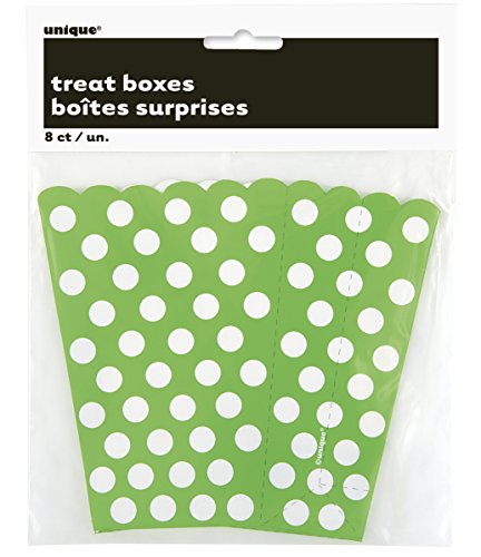 -. Feature : 8 Lime Green Polka Dot Popcorn Treat Boxes / Lime Green Favor Boxes measure 5.5" x 3.75" / Ideal for a birthday party or holiday party / Fill with popcorn, candies, or party favors / Combine with more Lime Green Polka Dot party supplies from Unique