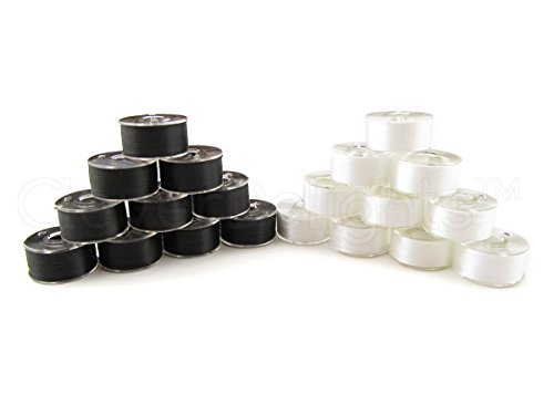 - 6 white and 6 black prewound bobbins - Size A bobbins - 7/16" x 13/16" - Approximately 125 yards per bobbin