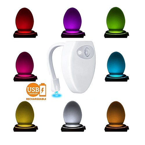 UPGRADED RECHARGEABLE 8-COLOR VERSION: Our toilet nightlight adopts lithium polymer rechargeable battery, no batteries need any more. Charging once for 2 hours can be used at least 2 months.
