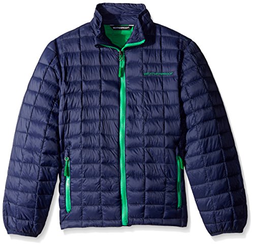 Weatherproof Big Boys' Box Quilted Thermoball Jacket, Navy/Green, 18/20