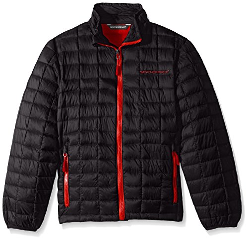 Weatherproof Big Boys' Box Quilted Thermoball Jacket, Black/Red, 18/20
