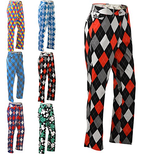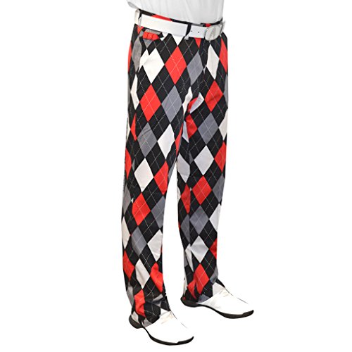 Studio : Royal Awesome Publisher : Royal Awesome Binding : Sports Apparel Product Description Royal Awesome Mens Diamonds in the Rough PantsShine Like A Diamond With Multi-Colored DesignRoyal Awesome golf pants are here to add some fun to your golf course outing. You'll turn heads in their stylishly loud patterns that add a modern twist to the fun traditions of the game of golf. And so everyone knows you're having the most fun on the course, each pair comes with a golf tool/bottle opener!What Customer's Are Saying: "These were a great purchase. Fits true to size, and great material. Would definitely recommend these for any one looking for a different look in a quality pant for your next golf trip."Royal Awesome Mens Diamonds in the Rough Pants features: * Black, gray, white and red diamond pattern adds flare to any golf outfit * Breathable, soft fabric is made for comfort and durability * Stretch engineered for a full range of golf motion * Tee loops and tour slit for pants that are truly designed for the golf course * Designed for a true to size fit * 97% Cotton a 3% Spandex Royal Awesome...For The Pars And The Bars! 0