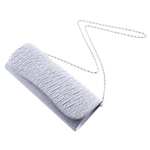 Product Description With classic and elegant features present, this pleated evening clutch adds some wave edge . Conveniently, you can spend the night hands free with the detachable silver chain that is included.Measurement is app 26x10x5.5cm(10.24x3.94x2.17inch) Chain 120cm(47.24 in) . 0
