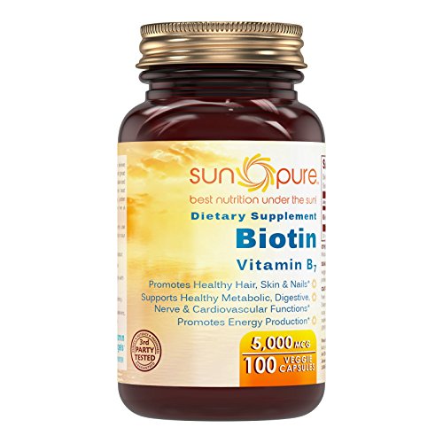 Support your healthy lifestyle and experience the many benefits of Biotin with Sun Pure Biotin 5,000 Mcg 100 Vegetarian Capsules