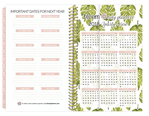 bloom daily planners 2017-18 Academic Year Daily Planner - Passion/Goal Organizer - Monthly and Weekly Datebook and Calendar - August 2017 - July 2018 - 6" x 8.25" - Palm Leaves