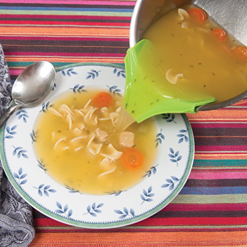 -. Feature : This Silicone Slip-On Pour Spout is perfect for baking and cooking and allows you to funnel liquid into other containers with ease. No more messes. / Attaches instantly to your bowl, pot or sauté pan to make pouring quick and easy. / The slip-on spout also lets you direct the pour of wet or dry ingredients. / It flexes to fit most pots, pans and bowls, and is top and bottom dishwasher safe and heat-resistant to 480-degrees Fahrenheit. Measures approximately 3"L x 5"W x 3/4"H. Comes with one pour spout in assorted colors. / *Evelots is the only certified seller of their items. Evelots is not a wholesaler so there should be no other sellers selling the exact same products. Any other sellers are unlawfully selling their own items using our certified Trademarked business name. They are breaking the law of trademark infringement and Amazon's rules.*