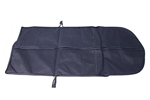 -. Feature : Full zipper closure protects your garments from the elements / Includes a carrying handle and fits most suit or jacket combinations / With portability in mind, the trifold design allows for a more compact garment bag / Made from nylon and non-woven materials / Two inside zipper pockets, deep enough to store a shirt, a pair of shoes, or accessories (ties, socks, belts)