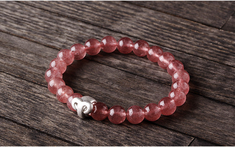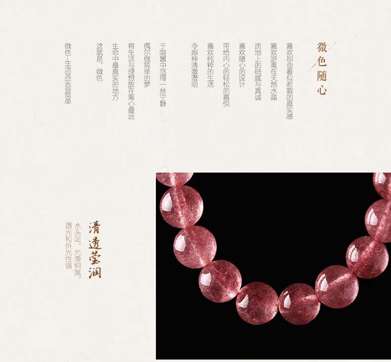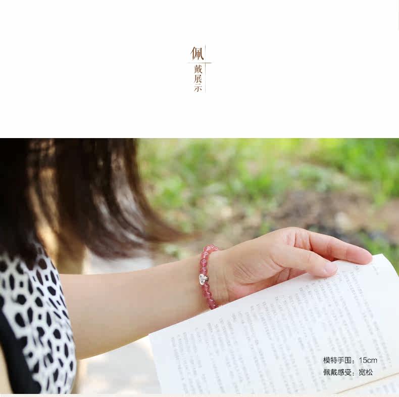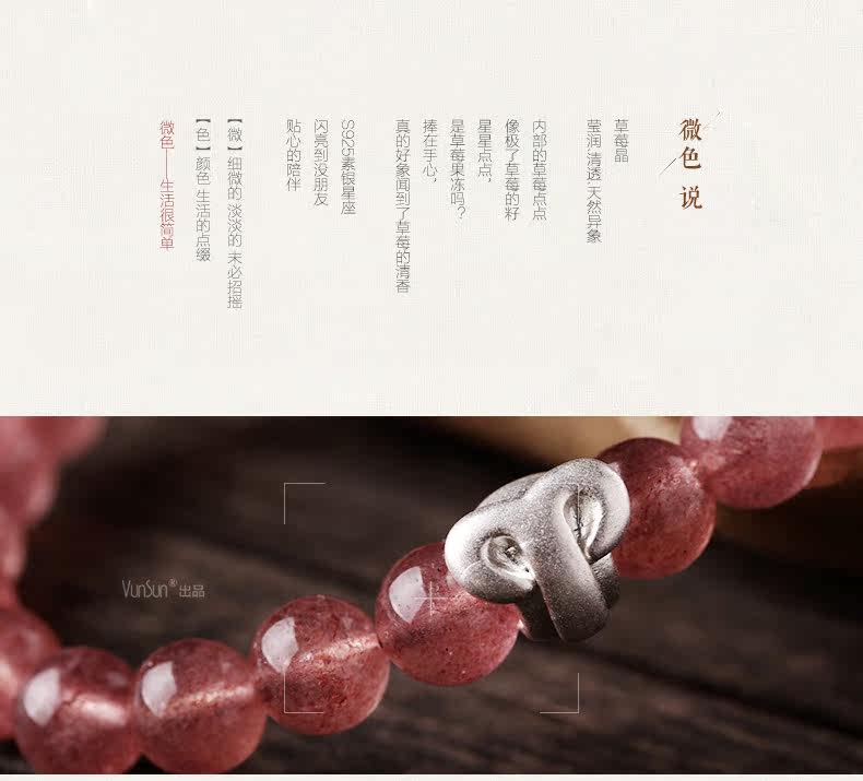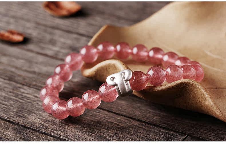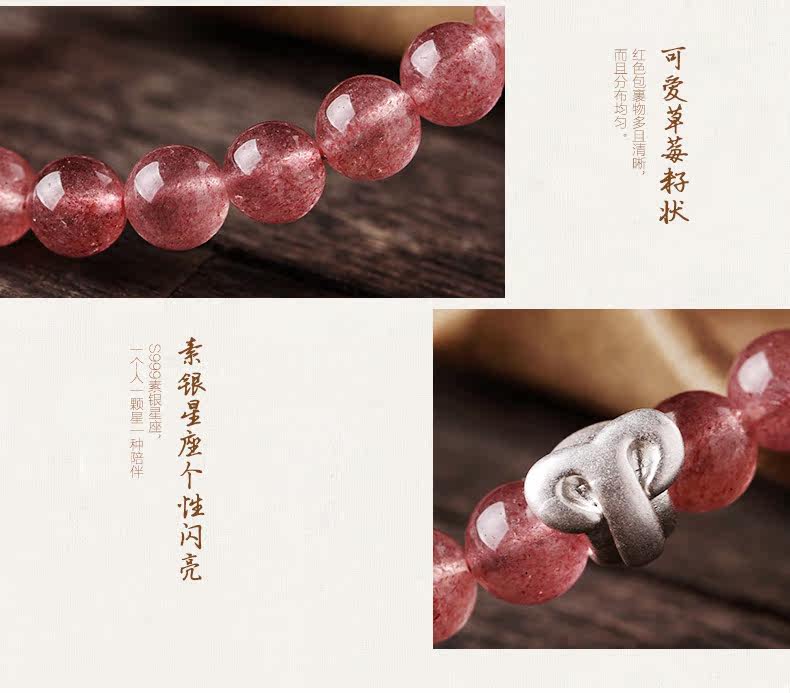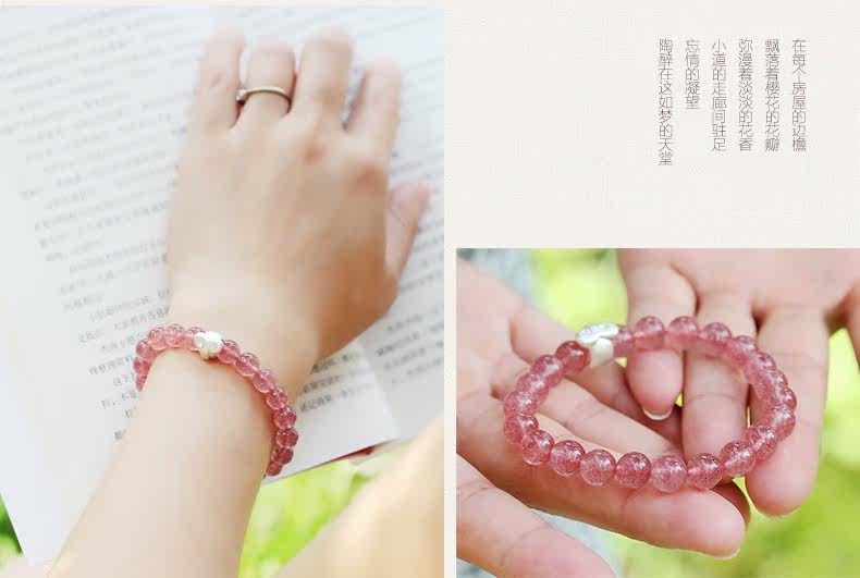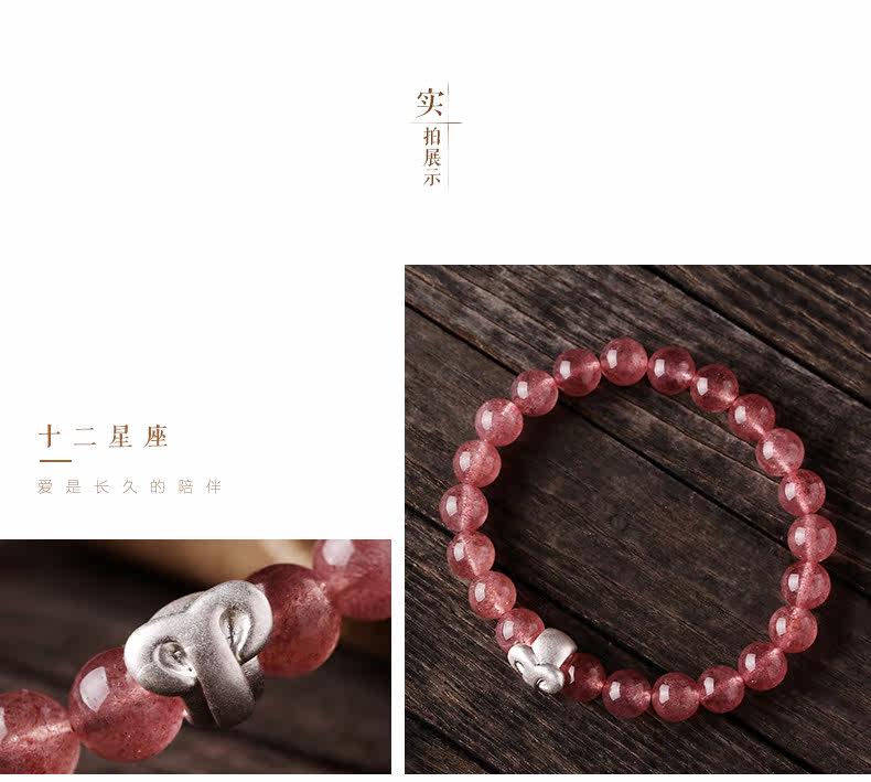 天然草莓晶手链女 单圈粉色手串十二星座925银 文艺 饰品