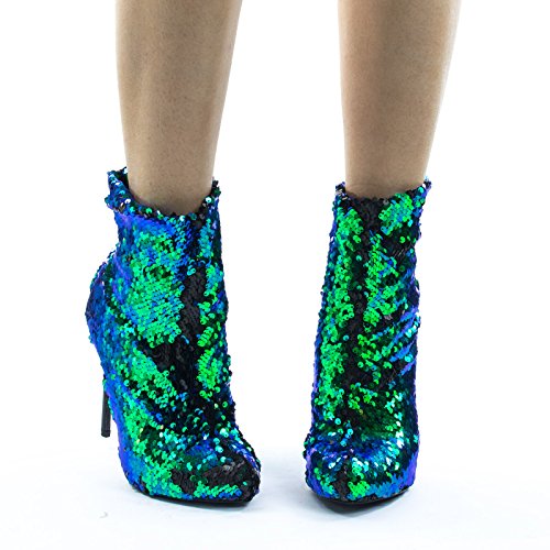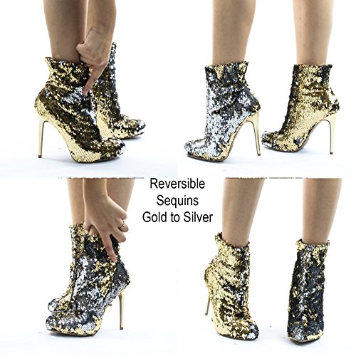 Binding : Apparel Product Description About This Shoes :These futuristic metallic high heel ankle bootie features a high stiletto heel, almond toe, soft shaft, full sequins upper that can be flipped simply by swiping your finger on the sequins. The sequins extend all the way to the INSIDE of the shaft, this could cause discomfort so it should be worm with high sock or over pants to minimize the sequins poking your skin. These boos comes in silver that can be turned into black sequins, the gold sequins can be turned into silver and the "mermaid green" can be flipped to reveal black sequins. Brand - Wild Diva Colors Available: Silver, gold, Mermaid Green Occasion: Party Shoe Type: Booties Shoe Style: Booties Inner Lining: synthetic Heel Height In Inches - 4.5 Heel Style - Stiletto Toe Style - round-toe Platform Height In Inches - Shaft Height In Inches - 5 Circumference Opening - Strap Type - 0 Sole - manmade All Man Made Material unless otherwise stated. Computer/Phone/Table monitors might show color differently because of its quality or calibration, we suggest you look at the photo in at least 3 monitors if you need exact color match of your shoes. 0