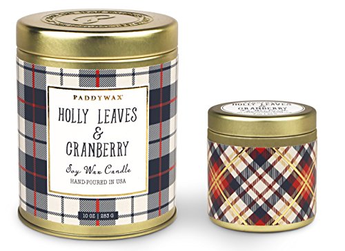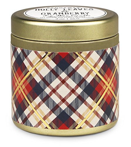 Paddywax Tartan Holiday Collection Scented Travel Tin Candle, 3-Ounce, Holly Leaves & Cranberry