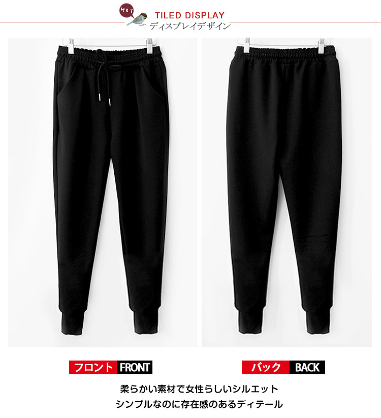 | ウエストゴムで楽ちんジョグパン柔らかい素材で女性らしいシルエット裾絞りデザインでコーデのポイントにシンプルなのに存在感のあるディテール | |