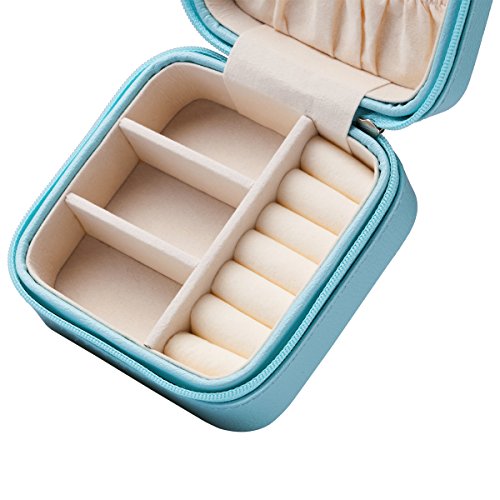 Vlando Small Faux Leather Travel Jewelry Box Organizer Display Storage Case for Rings Earrings Necklace (Blue)