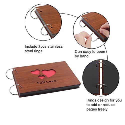 Farway DIY Scrapbook Album with Plain Papers Photo Album Wood Cover Anniversary for Wedding Book Couples Graduation Travel Memory ( Full Love)