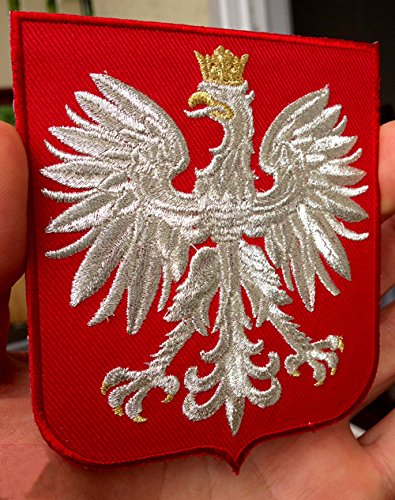 VEGASBEE POLAND EAGLE POLSKA COAT OF ARMS POLISH CREST RED SHIELD SILVER METALLIC EMBROIDERED PATCH