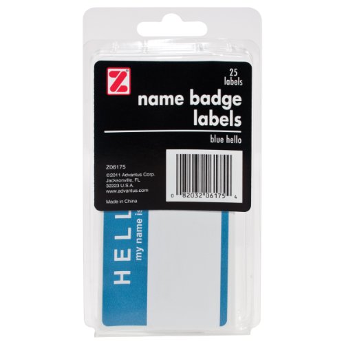 ADVANTUS Self Adhesive Name Badge Labels, 25 Labels, 3-3/8 x 2-1/4 Inches, Blue Hello (Z06175)