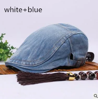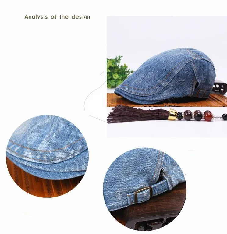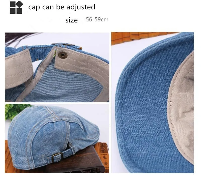 | [해외]2016 새로운 가을 코튼 베레모 모자 남성 여성 높은 품질 캐주얼 남녀 데님 베레모 청바지 평면 태양 cap |