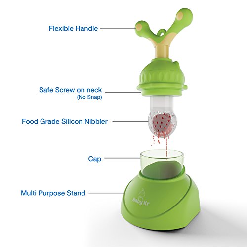 BabyKr Premium Silicone Baby Food Feeder, Happy Fresh Fruit Teething Toy Nibbler, Green