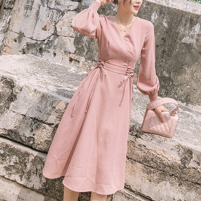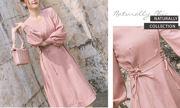 ウエスト部分のレースアップディテールがガーリーさを引き立てるワンピースです♪