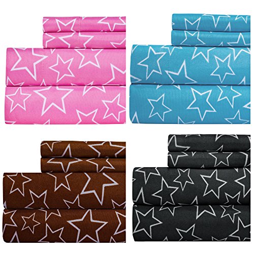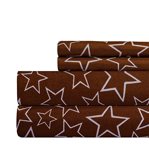 Weavely Star Print Best Quality Bedding Sheet Set, Extra Deep Pockets Fitted Sheets, 100% Luxury Super Soft Microfiber Sheet Set, 3-Piece Set - Brown - Twin