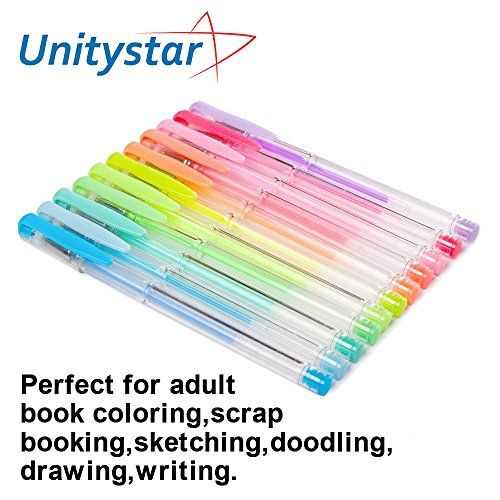 - 180 BOLD & VIBRANT COLOURS FOR CREATIVE COLORING: UnityStar Gel Pens Set contains a huge selection of 180 vibrant colors including 62 glitter, 39 glitter-neon, 21 metallic, 19 neon, 4 classic, 18 pastel, 11 magic & 6 swirl, allowing you to mix and match for your creative coloring projects. And 180 same color free ink refills come in handy when the original ones run out of ink during your project.