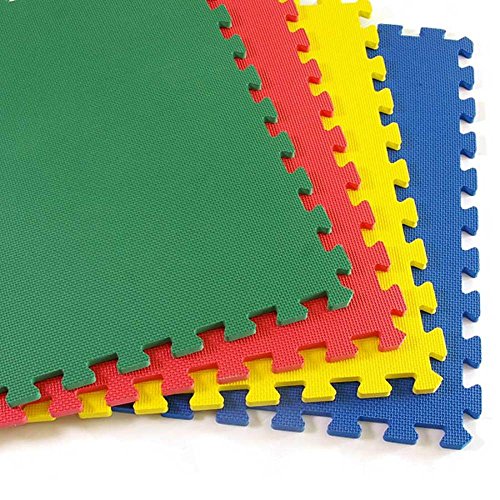 -. Feature : Each 16 pack includes 4 each Red, Green, Yellow and Blue 2x2 ft x 1/2 inch tiles. / Lead Free and Latex Free. No Formamides or Odor. / Lightweight and portable. / Easy to install, easy to take up. No Adhesive Required. / Anti-Fatigue and Waterproof.