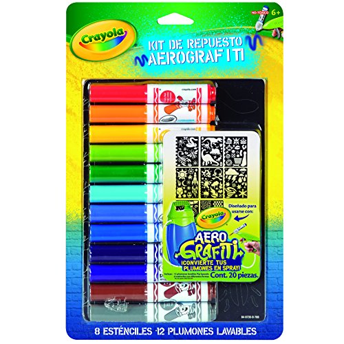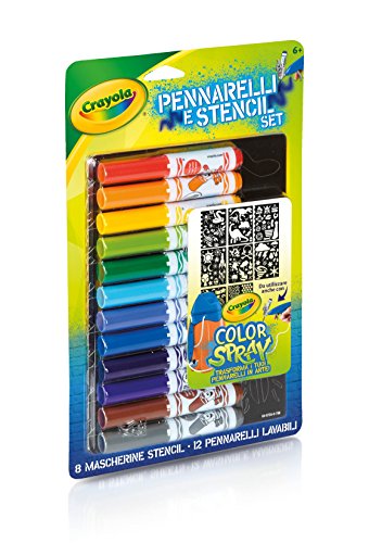 -. Binding : Toy -. Brand : Crayola -. Color : Multi-Color -. EAN : 0071662487355 -. Feature : Markers in the "gender neutral" pack come in a classic rainbow spectrum / Sturdy stencil sheets can be used again and again / Markers and stencils can be used to enhance the Marker Airbrush experience -. IsAdultProduct : 0 -. ItemPartNumber : 048735 -. Label : Binney & Smith -. Manufacturer : Binney & Smith -. Model : 04-8735 -. MPN : 048735 -. PackageQuantity : 1 -. PartNumber : 048735 -. ProductGroup : Toy -. ProductTypeName : TOYS_AND_GAMES -. Publisher : Binney & Smith -. ReleaseDate : 2014-04-01 -. Studio : Binney & Smith -. Title : Crayola Airbrush Marker and Stencil Pack -. UPC : 793625012687 -. Warranty : No Warranty