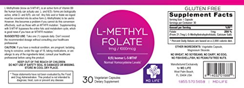 Studio : MD.LIFE Publisher : MD.LIFE Binding : Health and Beauty Product Description Why You Need MD.LIFETM L-Methyl Folate. Did you know that millions of people worldwide have a genetic variation that impairs their ability to properly utilize Folic Acid (also known as Vitamin B9), and they don't even know they have it? MD.LIFETM L-Methyl Folate has the active ingredients needed to help your body absorb important B Vitamins-such as the active ingredient 5-MTHF which is derived from pure L-5-Methyltetrahydrofolate. Inadequate levels of L-5-MTHF have been linked to childhood leukemia, colon cancer, precancerous cervical dysplasia, and breast cancer.* MD.LIFETM L-Methyl Folate contains powerful 5-MTHF which helps play a crucial role in DNA synthesis and repair, ultimately helping to prevent and reduce Folic Acid-related diseases.* MD.LIFETM L-Methyl Folate is a natural health supplement that contains no artificial fillers or preservatives and is Gluten Free, Dairy Free, and Nut Free. Try MD.LIFETM L-Methyl Folate today. 90-Day Satisfaction Guarantee! See Our Awards in the Photo Section! 0