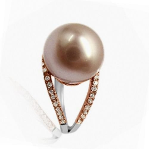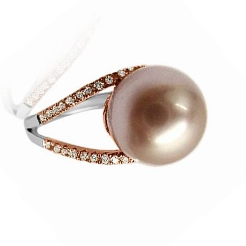 -. Title : Velini 925 sterling silver rose plated ring micro pave setting 38 CZ stones and pink pearl in center