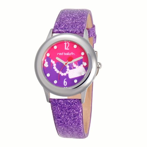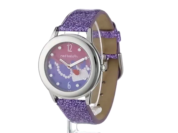 Red Balloon Kids' W000358 Glitz Stainless Steel Purple Glitter Leather Strap Watch