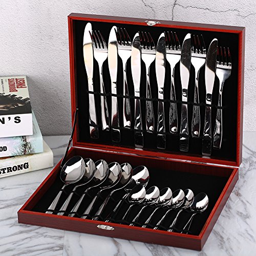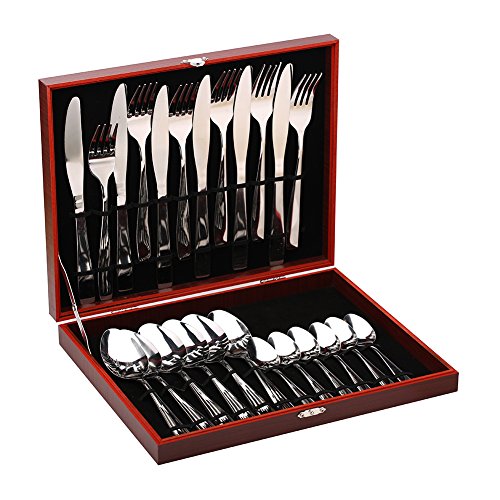 ZLCA Flatware Sets, Stainless Steel Silverware Cutlery Set, 24pcs Stainless Steel Cutlery Set in Gift Box