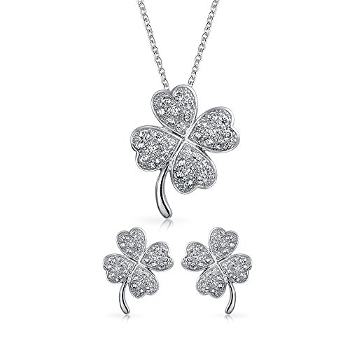 -. Title : Bling Jewelry 925 Silver CZ Pave Clover Pendant Necklace and Earrings Set