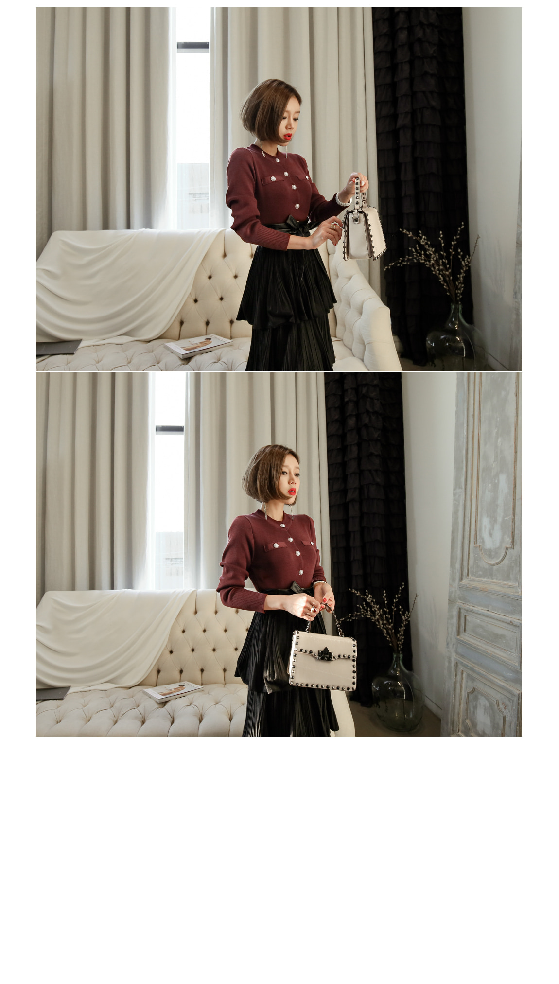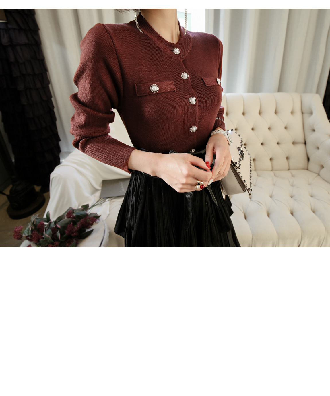 カンカンスタイルでシンプルなニット、ティーともお似合いです