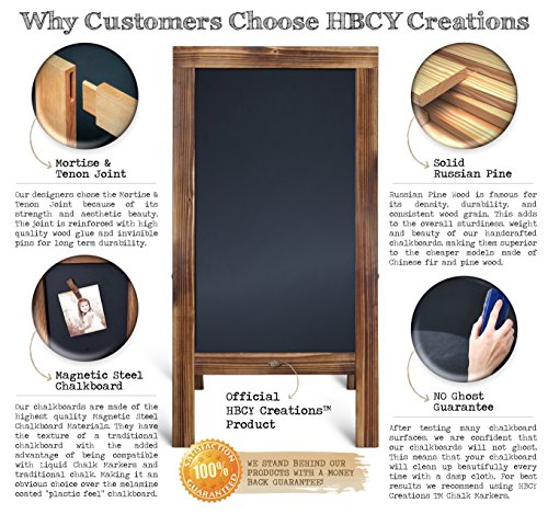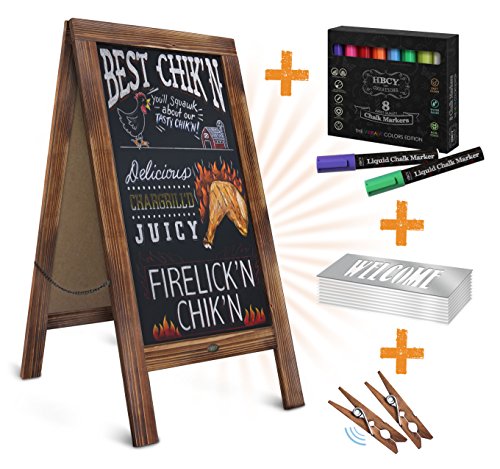BEAUTIFULLY HANDCRAFTED - Each of our A Frame Chalkboards are handcrafted with care and attention to detail and design. Our unique torched wood design was chosen with the trending styles in mind to catch attention and bring a modern yet classic look to your store or event. Please note that color and distressed level may vary due to the fact that our chalkboards are handcrafted.