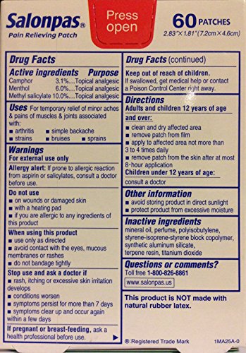 - Title : Salonpas Pain Relieving Patches - Apply For 8 Hours - 60 Count Patches Per Box - Pack of 2 Boxes