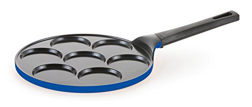 Neoflam Pancake Pan Oblong pancakes are out of design. Enter the Neoflam Pancake Pan. It is guaranteed to turn your morning pancakes into a seamless stack every time. This unique piece of cookware can produce seven mini-pancakes at once. Simply pour batter into the molds and out pops a perfect circle. Of course, you can experiment with your own breakfast creations. For example, you could cook a couple pancakes, two eggs, a sausage patty, a slice of ham, and a piece of bacon in tandem to create a delicious breakfast sandwich a la minute! Neoflam cookware is produced with Ecolon ceramic coating. This is an all-natural alternative to traditional nonstick coatings, and it is free of PTFE/PFOA. When Ecolon is applied to the cast aluminum body, the cookware transforms into a deliciously colorful piece with amazing features including a lightweight frame, a durable body, and a scratch resistant, easy to clean surface. Features: - Cast aluminum body is lightweight and highly heat conductive
